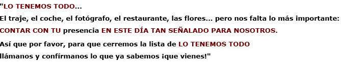 Contamos con vuestra presencia para compartir con nosotros este día tan especial.